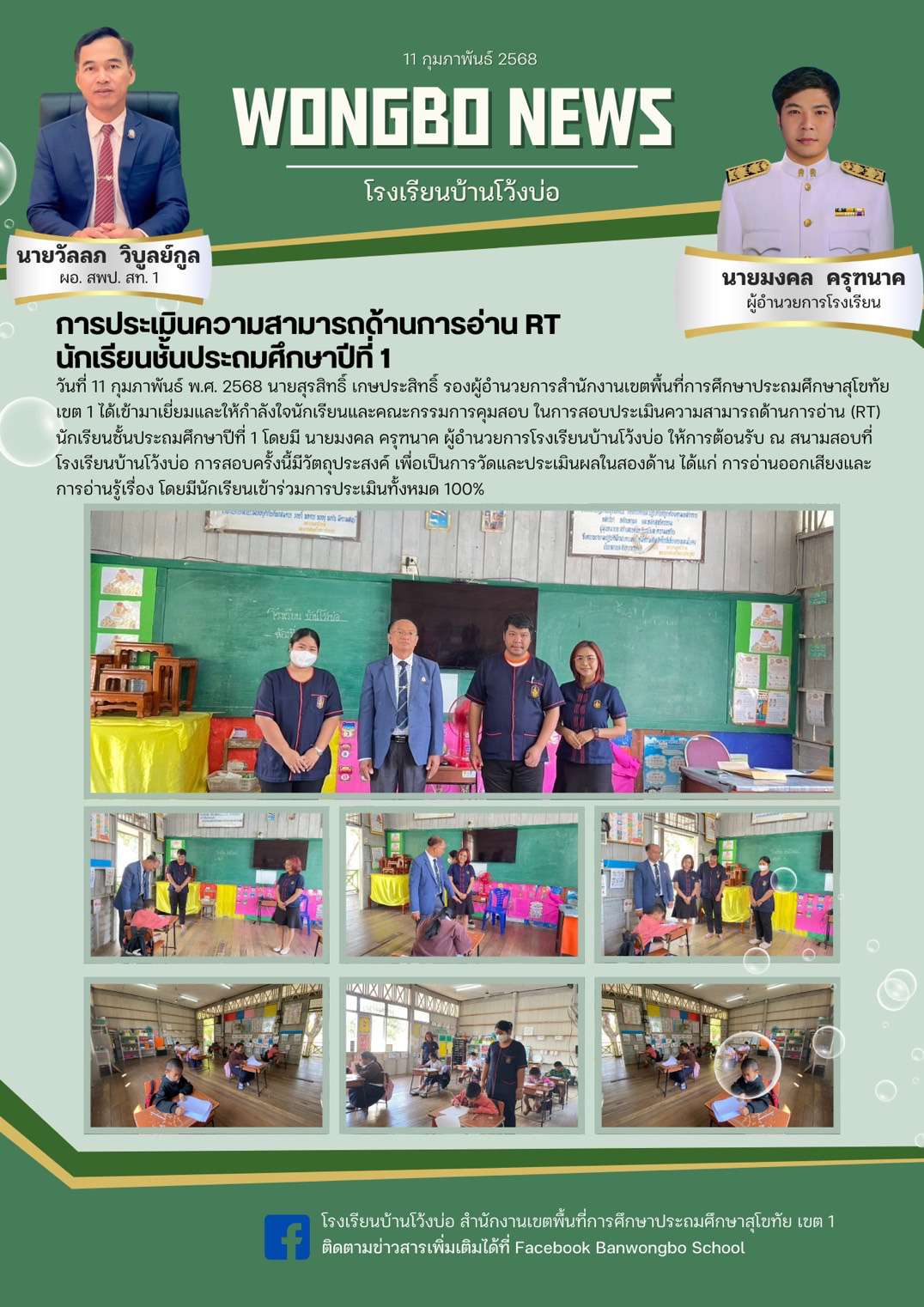นายสุรสิทธิ์ เกษประสิทธิ์ รองผู้อำนวยการสำนักงานเขตพื้นที่การศึกษาประถมศึกษาสุโขทัย เขต 1เข้าเยี่ยมและให้กำลังใจนักเรียนและคณะกรรมการดำเนินการสอบในการประเมินด้านการอ่าน(RT)ของนักเรียนชั้นประถมศึกษาปีที่ 1 ณ สนามสอบโรงเรียนบ้านโว้งบ่อ