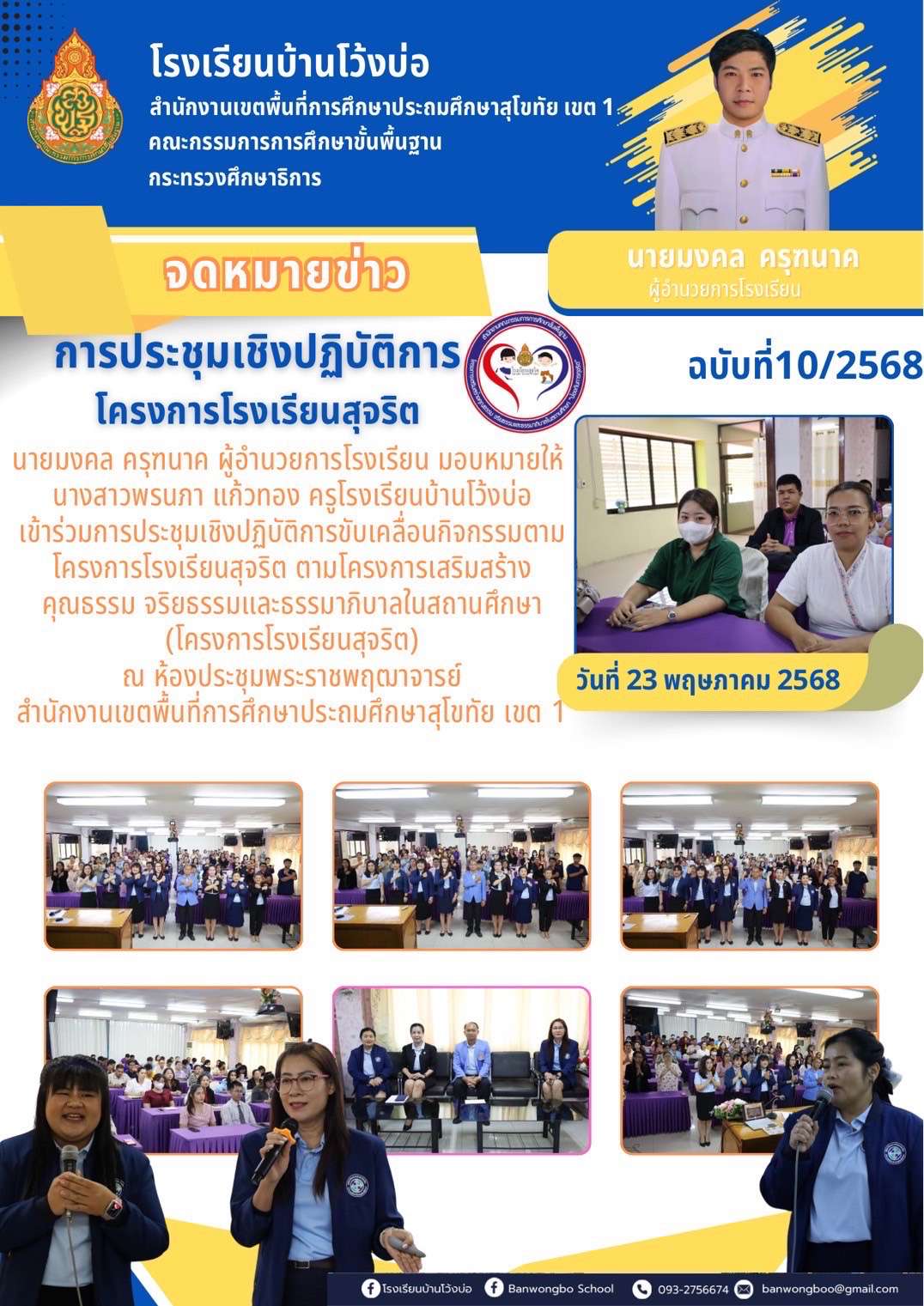 เข้าร่วมการประชุมเชิงปฏิบัติการขับเคลื่อนกิจกรรมตามโครงการโรงเรียนสุจริต ตามโครงการเสริมสร้างคุณธรรม จริยธรรมและธรรมาภิบาลในสถานศึกษา