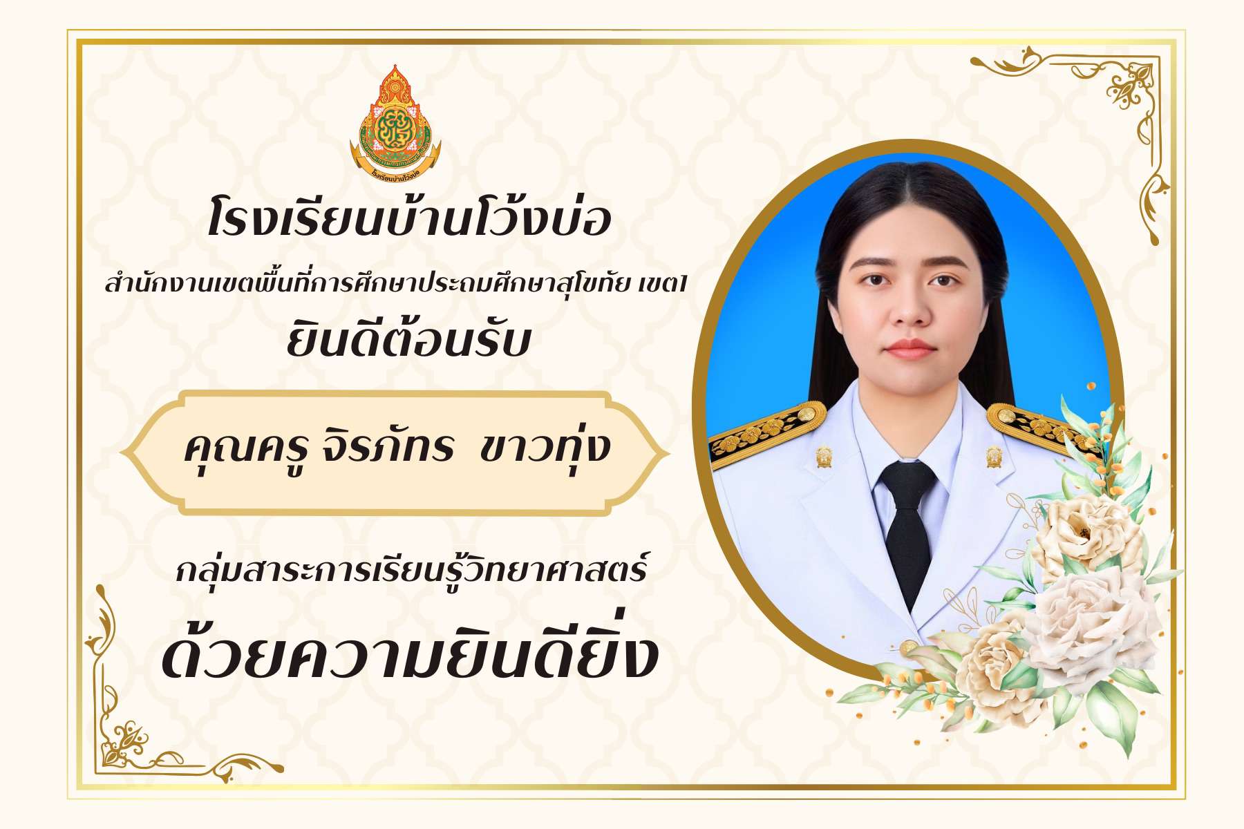 โรงเรียนบ้านโว้งบ่อยินดีต้อนรับ ครูจิรภัทร ขาวทุ่ง