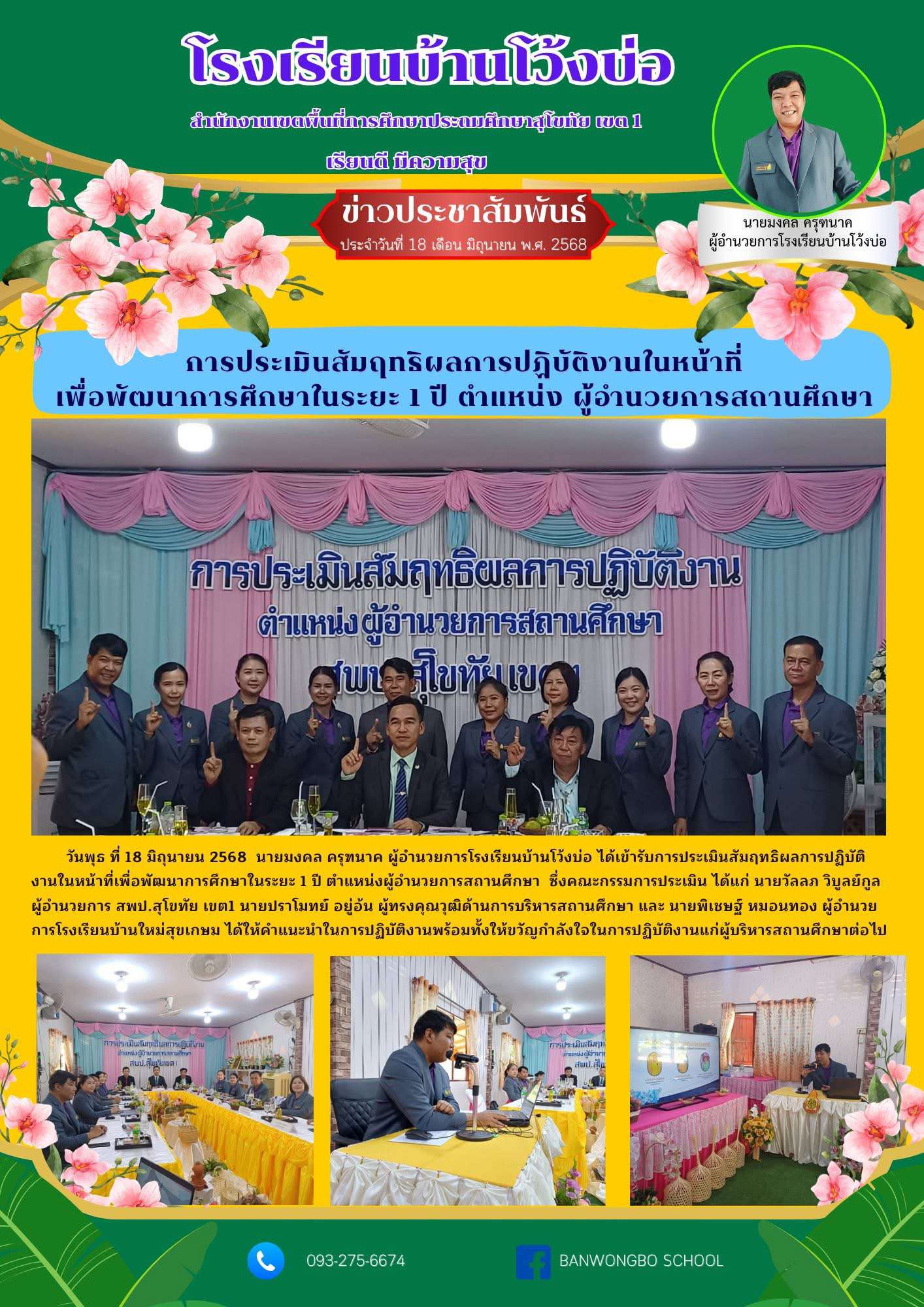 ได้เข้ารับการประเมินผลสัมฤทธิ์การปฏิบัติงานในหน้าที่เพื่อพัฒนาการศึกษา