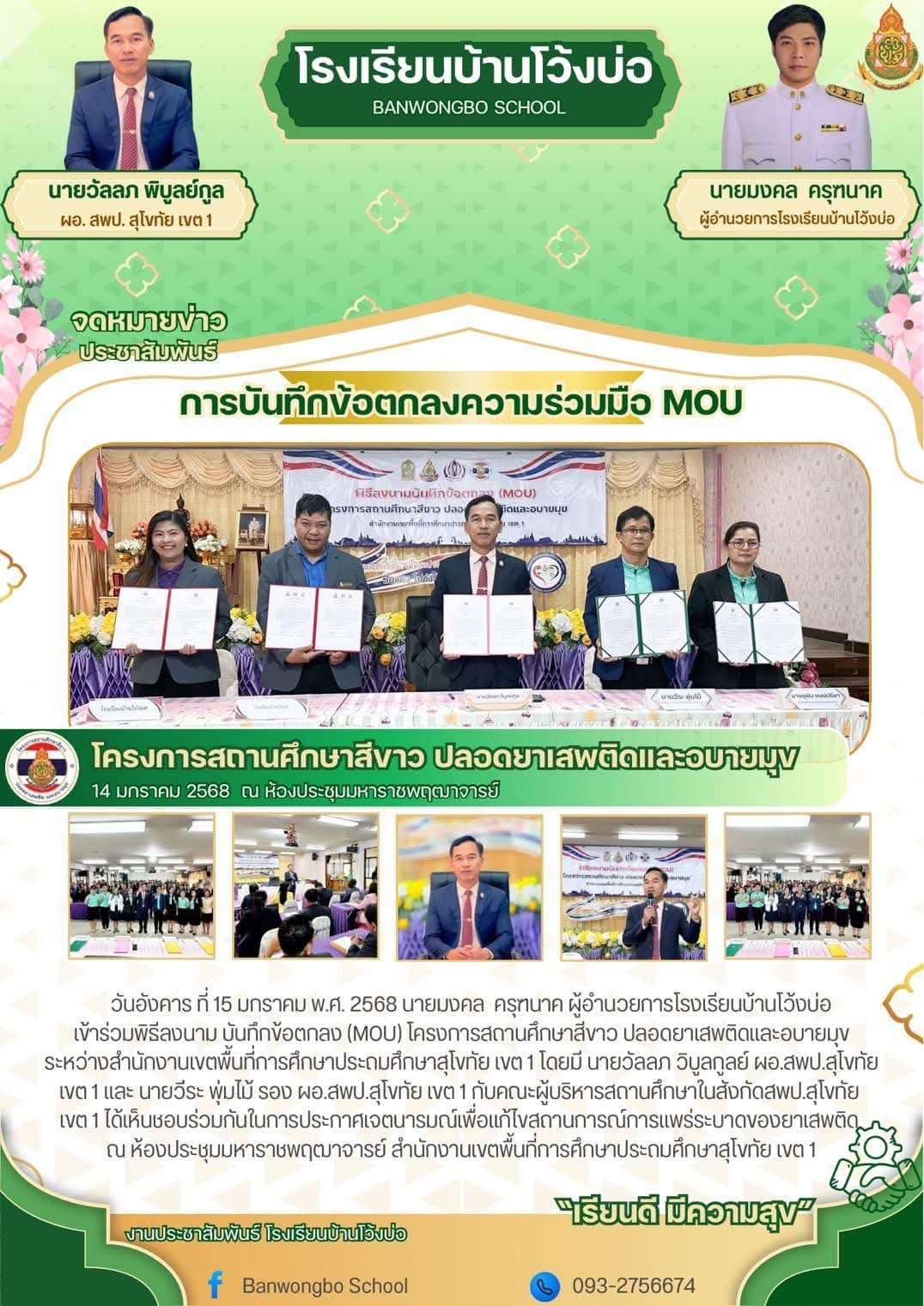 ผู้อำนวยการร่วมพิธีลงนาม บันทึกข้อตกลง (MOU) โครงการสถานศึกษาสีขาว ปลอดยาเสพติดและอบายมุข